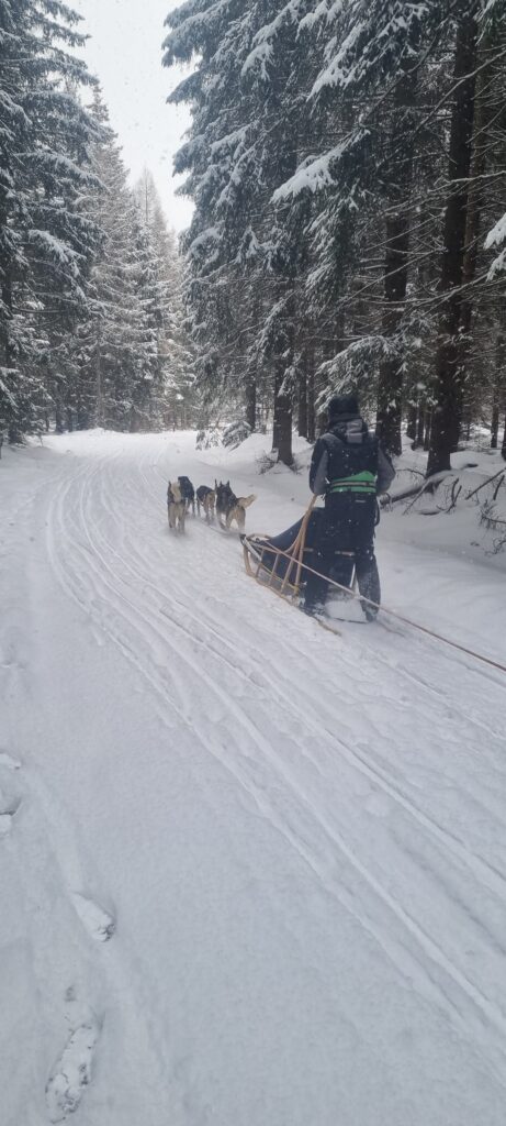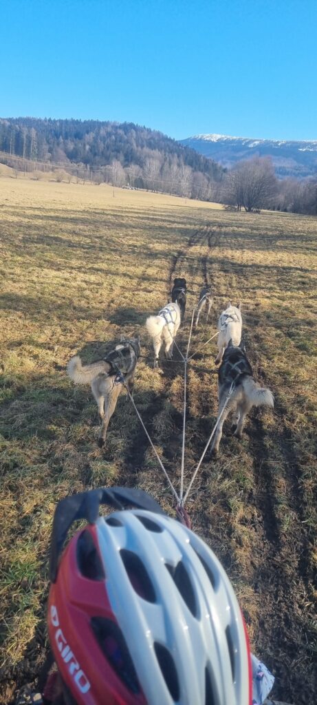 Jízda se psím spřežením Podrobné informace, eshop, rezervace termínů jsou na www.huskyzazitky.cz klient řídí saně, vše jistí instruktor na běžkách spřežení na prašanu Na sněhu… … i na trávě.